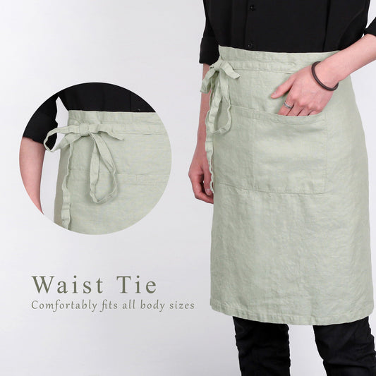 Premium French Linen Bistro Apron 25 x 35 Inch - Sage