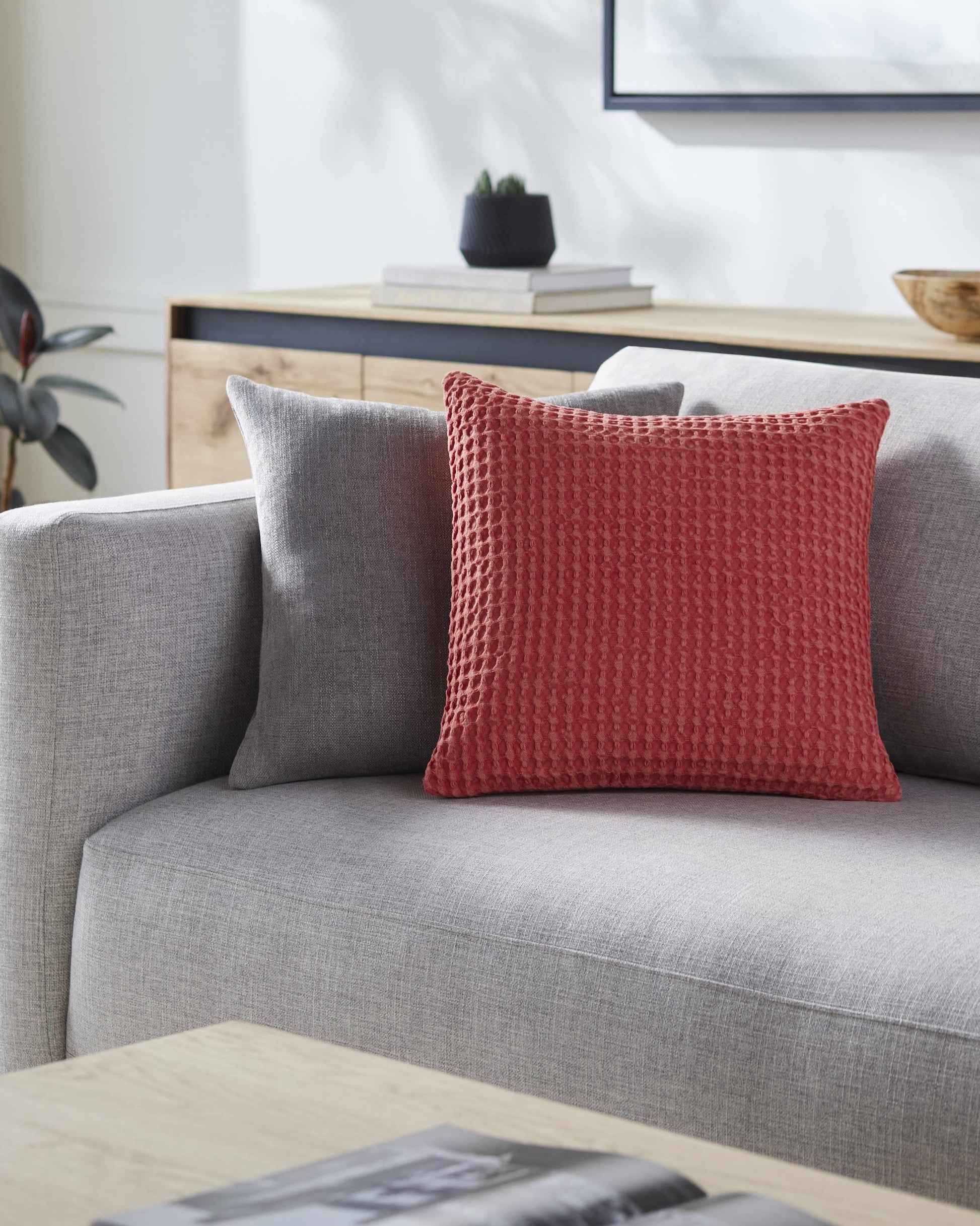 Solvang Textured Coral Cotton Square Throw Pillow