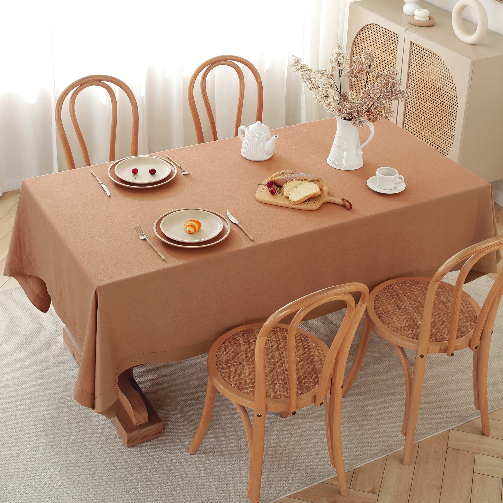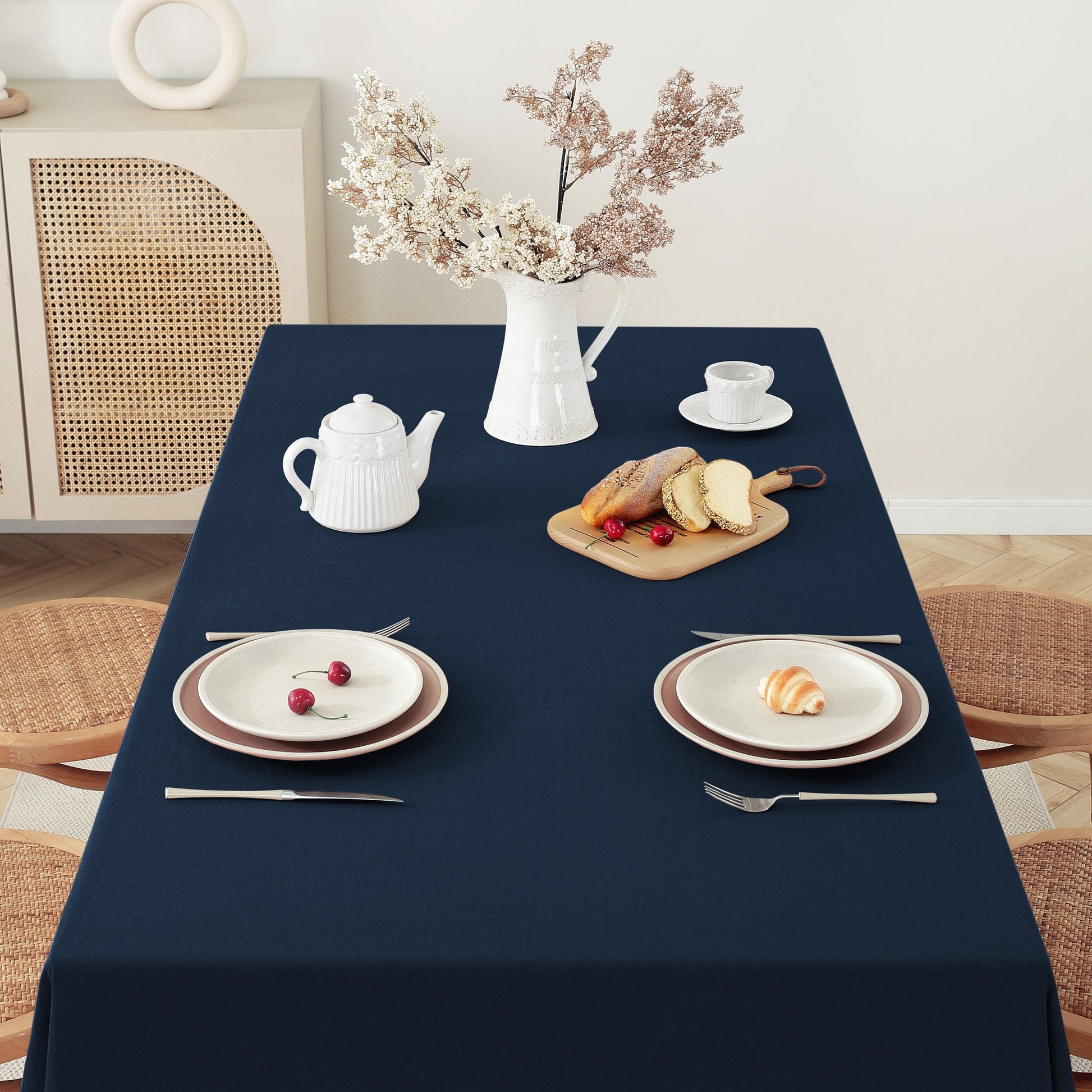Effortlessly Stylish: Our tablecloths are designed for ease. Machine washable and getting softer with each wash, they offer the perfect blend of luxury and practicality. Minimal ironing required, they're an embodiment of laid-back elegance that improves with age.